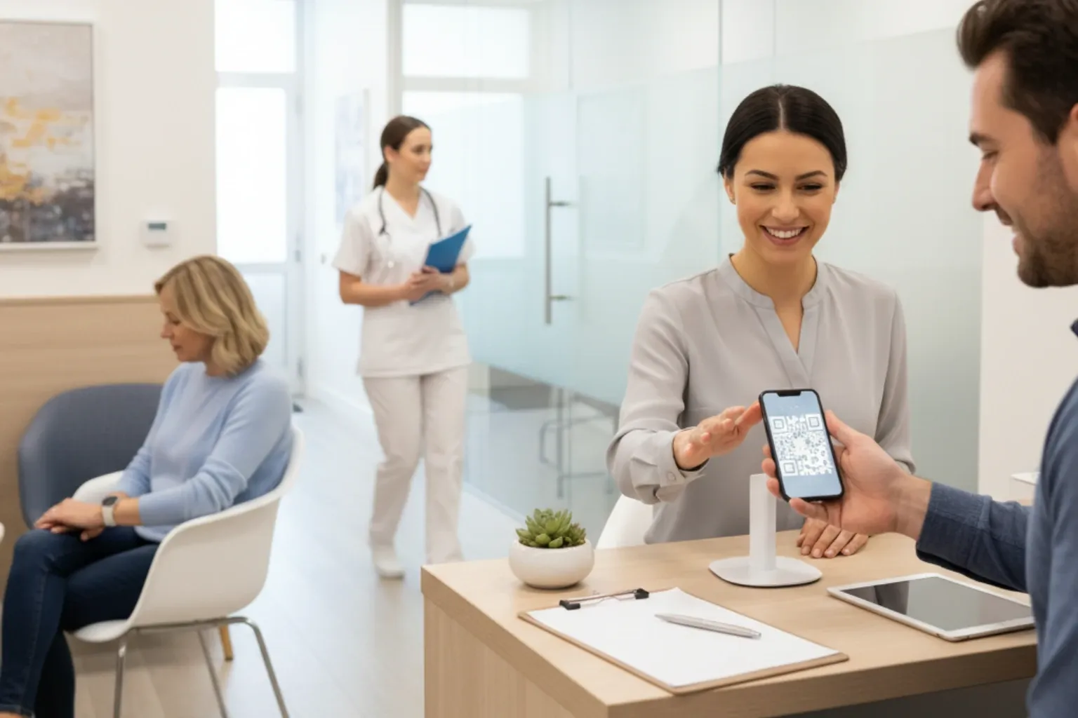 - Check-in digital: formulario previo y QR en recepción para acelerar registro y anamnesis inicial.
